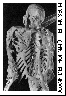 Bony prison. FOP fused the spine, shoulders, ribs, and elbows of this man, who died of pneumonia at age 39.