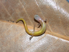 Chamberlain's dwarf salamander showing the bright yellow vetnral color of this species. |