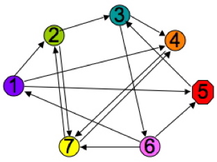Is there a path through these 7 circles (nodes) using the available paths (directed edges)?