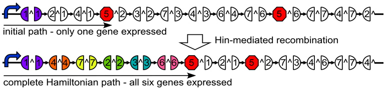 Is there a path through these 7 circles (genes) using the available paths (half-gene assemblies)?