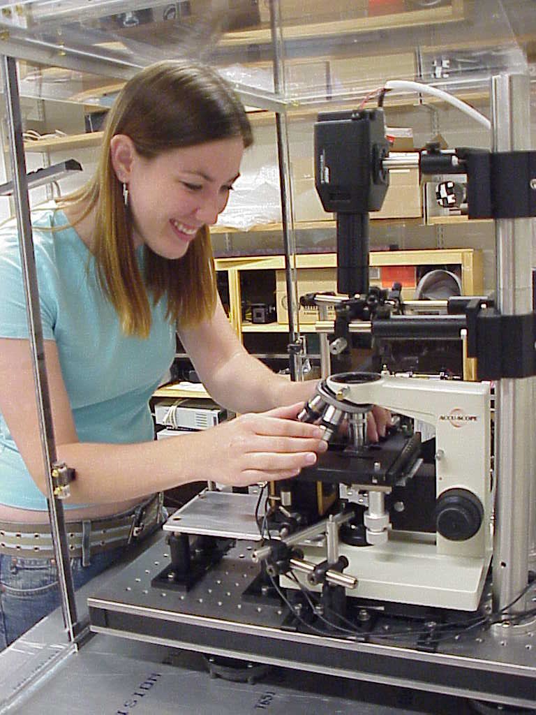 Rachel McCord ('04) built and Megan McDonald ('05) used optical tweezers.