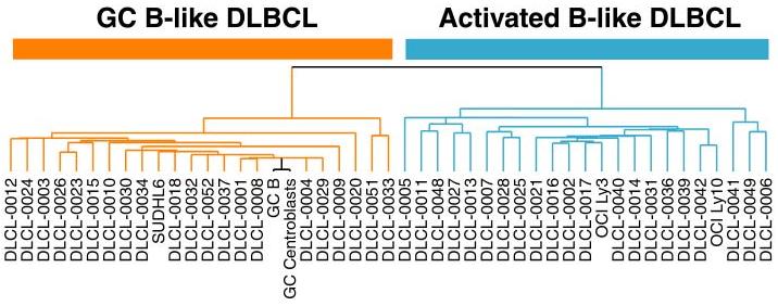 Recluster DLBCL samples using Germinal Center and Activated B-cell genes