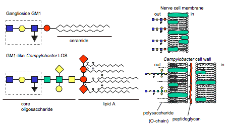 Figure 4 . Similarity between human ganglioside GM1 and GM1-like epitope of C. jejuni LOS. (Image from Ang et al., 2004. Reproduced with permission of the author.)