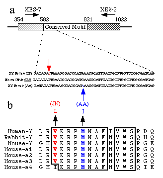 sequence of SRY for the human-Y, rabbit-Y, mouse-Y and mouse autosomal