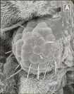 Eyeful. Eye produced on a fruit fly's wing by a squid gene (A) resembles one produced by a mouse gene (B).