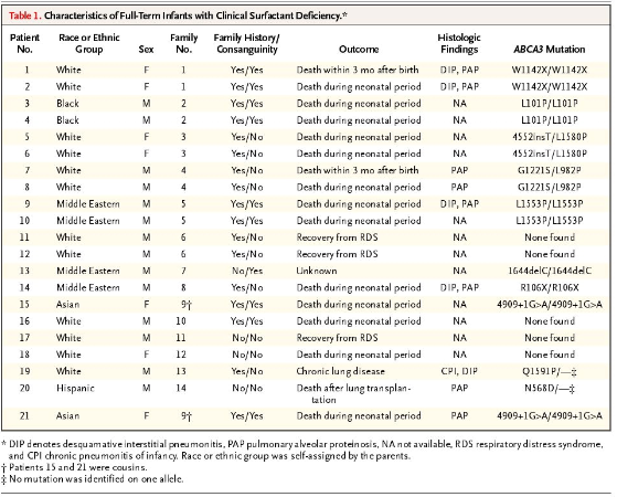 "ABCA3 Gene Mutations in Newborns with Fatal Surfactant Deficiency" - NEJM