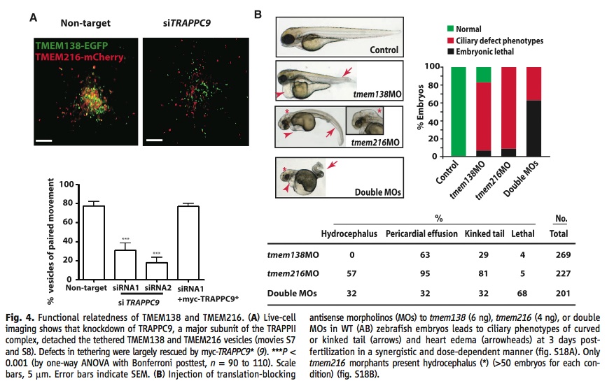 I didn’t understand why they included A in figure 4. It did back up their claim that TRAPPII was integral for the paired movement of vesicles, but the main point of the paper was to identify main functions and relationships between TMEM216 and TMEM138. Since TRAPPII was not the study genes I don’t think space needs to be sacrificed in the paper to add images about it and the figures might have been better placed in the supplemental material.