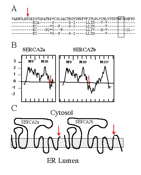 FIG. 1. A, comparison of partial SERCA2b sequences using
