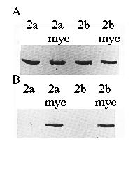 Epitope tags have been added to a variety of proteins in order to answer questions about topology and function. The human c-myc epitope has been used frequently for this purpose (Peculis and Gall, 1992; Ellison and Hochstrasser, 1991; reviewed in Kolodziej and Young (1991)). The caveat with epitope tagging of proteins is that the added epitope might disrupt native topology. If the topology were aberrant, then the misfolded protein would probably accumulate in the ER. For a protein which normally leaves the ER, subcellular localization of the tagged protein in the ER would reveal the misfolding. However, SERCA2 is an ER resident protein, so another assay was necessary to examine whether or not the added epitope disrupted the topology of SERCA2a-myc and SERCA2b-myc .
