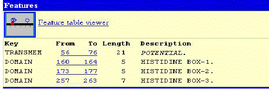 FIGURE 3 - This screenshot from Swis Prot reveals the different protein domains in the ERG25 protein.