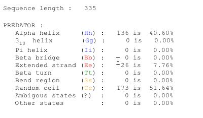 to contain 40% alpha helices, 51% random coils and 7.76% extended strands.