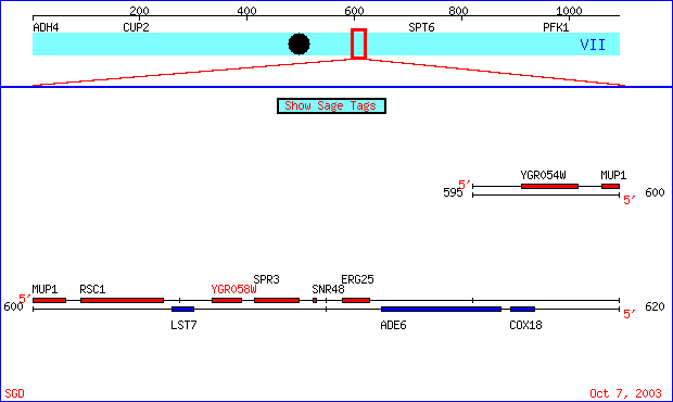 FIGURE 1 - This image from yeasstgenome.org shows the chromosomal location of YGR058W