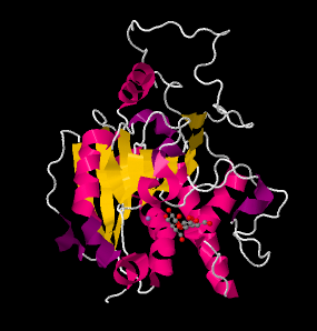 Figure 3. This PDB image shows a glycosyltransferase. Differences in the terminal sugar chain of this molecule result in the different blood types. Image obtained from RCSB Protein Data Bank.
