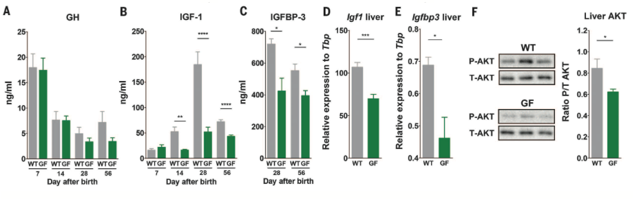 and found lower levels of IGF-1 and IGFBP-3 in GF mice when compared to WT