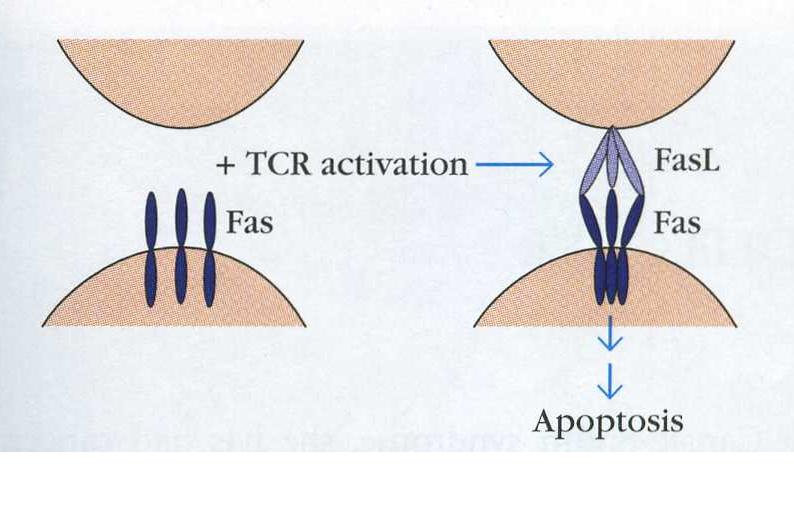 Activated T cells coexpress Fas and FasL (Ju et al, 1995). This allows the T cells to be sensitive to FasL either on the same cell or on another cell. Activating B cells induces the expression of Fas, making them susceptipble to cell death via the Fas system. In mice and in humans with wild type Fas, Fas mediated cell death eliminates self reactive T cells in the periphery and activated T cells after the immune response has done its job (Nagata & Golstein, 1995).