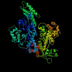 Figure 10. The structure of DNA polymerase in humans (Homo sapien). Image courtesy of Protein Databank. ID: 1TV9; PDB, 2005. Notice that mice (Mus musculus) and rats (Rattus norvegicus) have the same exact primary sequence, and hence share the same 3-dimensional structure as well.
