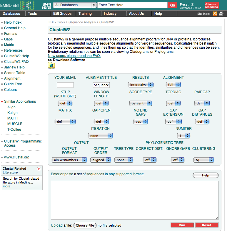 CLUSTALw http://www.ebi.ac.uk/Tools/clustalw2/index.html