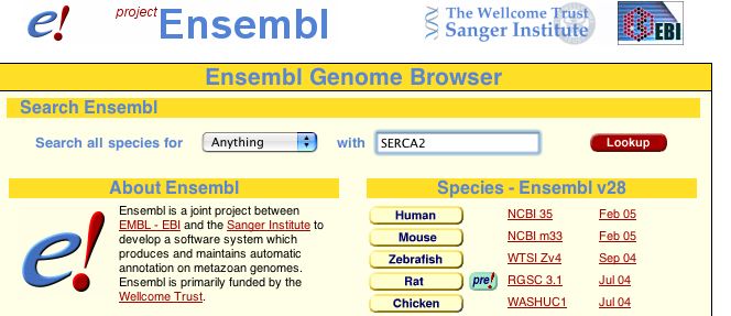 Go to NCBI at this URL www.ncbi.nlm.nih.gov and enter YFG or YFP (e.g. SERCA2).