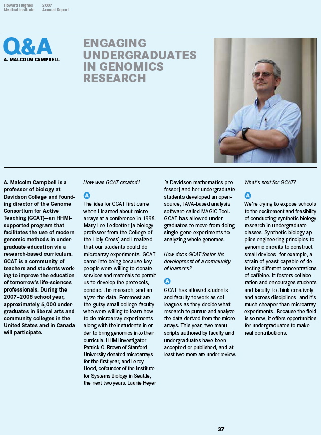 HHMI 2007 Annual Report cites GCAT as a Community Builder