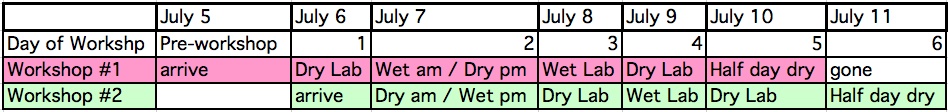When: workshop #1: July 6 - 10 mid day; and workshop #2: 7 - 11, 2009