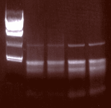 In order to further characterize the mating reaction you will be isolating total RNA from TWO cultures of DLY1. One culture contains cells in logarithmic growth phase grown in YEPD. The other contains 'log' cells, in YEPD, that have been treated for over 3 hours with a factor. (so what should they be doing?) Next week you will determine the effect of a factor on transcription of FUS1, a gene involved in the mating reaction, and IPD2, the gene encoding isocitrate dehydrogenase by performing dot blot analysis on the samples.