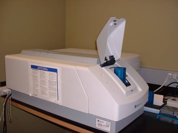 We dropped in to touch base with one of Barbaraıs colleagues who was involved in preparing the DNA for the microarray printing, to talk with him about the resolution of a problem that had been encountered. The PCR products in their 96 well plates had been ethanol precipitated but some of them had been topped with a different kind of plastic cover that partially dissolved in the ethanol and may sticky and stringy messes in some of the tubes. A great deal of care had to be exercised by Cheryl in the placing of these particular samples into the 392 well plates so that none of the tips would be clogged and none of the apparatus would stick together when it should be separating after interacting. Luckily, the fatal covers had only been used on a few of the plates. After assuring him that the process went well and so had the test print earlier in that day, he talked about control spots. Interestingly, he and Barbara agreed that they usually do not look at the data for the control spots on the arrays. However, he puts some RNA transcribed in vitro from Bacillus DNA into each sample and puts specific Bacillus DNA dots on his arrays; this helps in case of different amounts of RNA in different samples before cDNA synthesis. They discussed a similar type of control using a different bacterium that is currently available through the core facility printing Barbaraıs new arrays, and she is going to think about using this control.