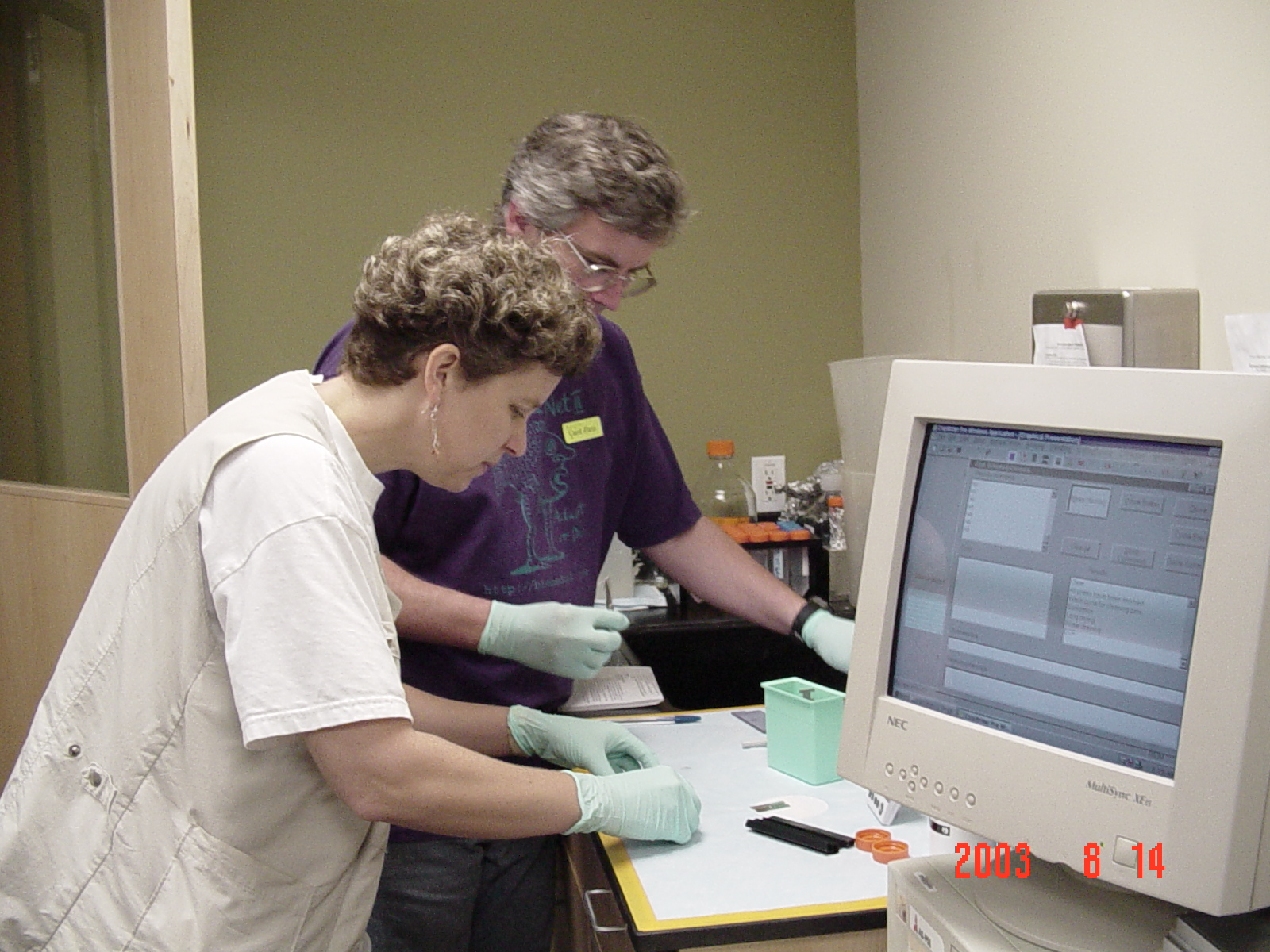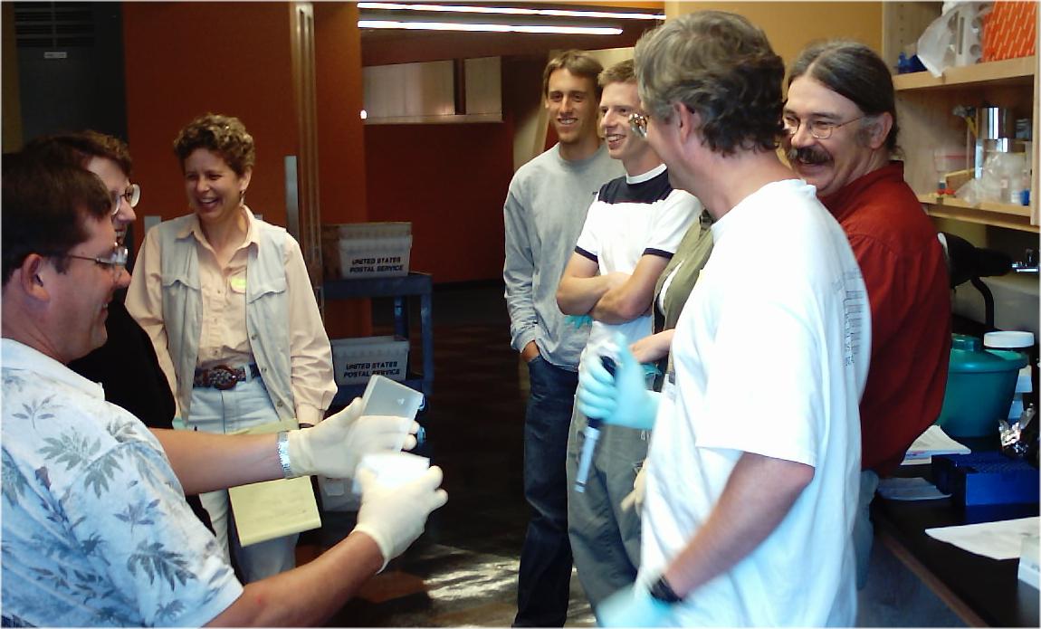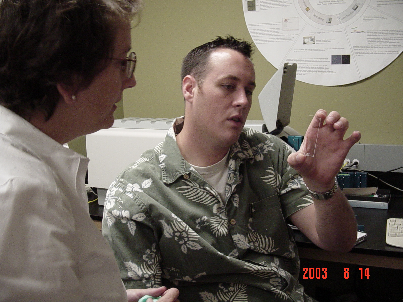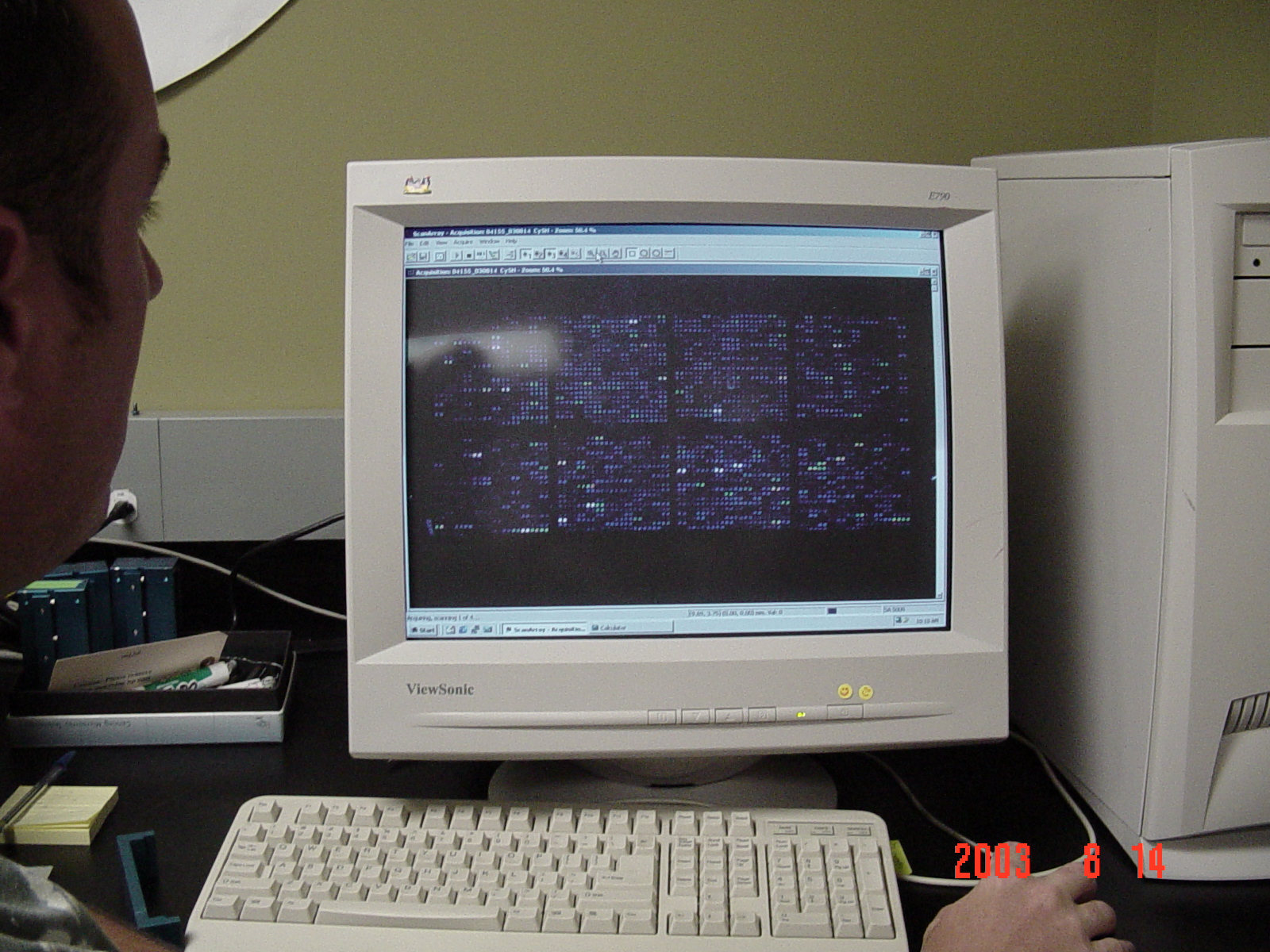 The experiment was designed to duplicate the DeRisi diauxic shift paper (1997). All of the RNA was prepared by Dr. Laura Hoopes' lab from two populations of cells. One group of cells was harvested at an optical density of 0.6 and the other was harvested at an optical density of 4.0. RNA was isolated and cDNA generated using one of three methods (indirect, direct, or 3DNA). Our goal was not to rate the three methods, but to determine if they worked and what pros/cons each method has. All methods did produce strong signals, so we are comfortable with GCAT members using the one they like best. It may be equipment, number of steps, time constraints, costs, etc. But GCAT does not want to tell people which method to do. We just want to make each method possible and to maximize your success.