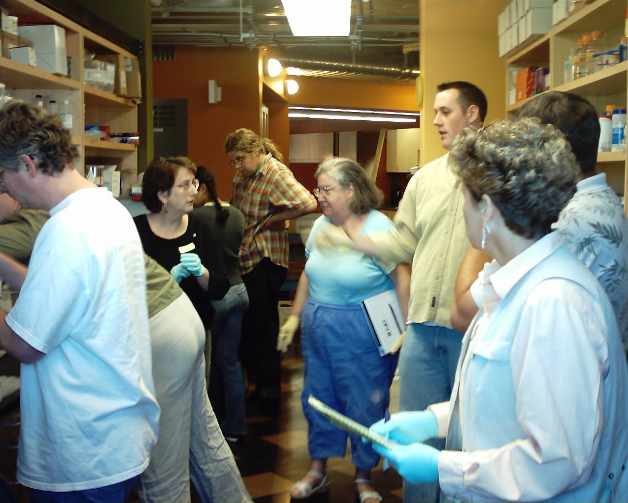 We broken into three teams: wet lab (left), data analysis (center) and assessment