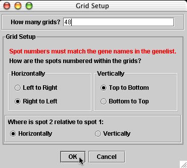 There are 4 metacolumns and 6 metarows in the top half and this is duplicated again in the bottom half. Therefore, if you wanted to grid every spot no this microarray, there would be a total of 48 grids each composed of 24 x 23 arrays of spots.