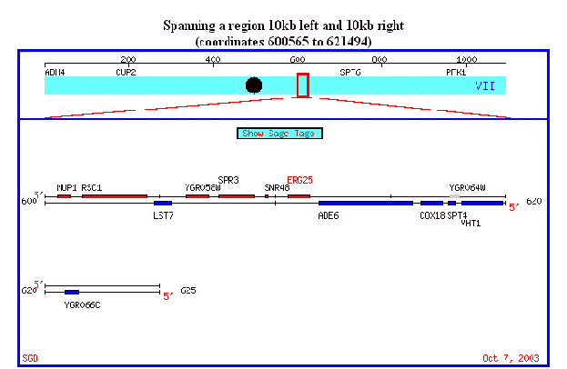 FIGURE 1 - Below is a rough outline of ERG25ís location on chromosome VII. Image found at yeastgenome.org