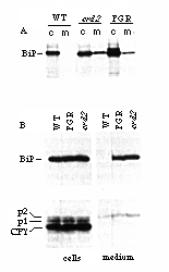 from cells and media with anti-BiP (upper panel) or anti-CPY (lower