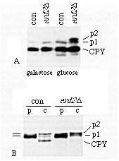 panel); p1 and p2 refer to the ER and Golgi forms of CPY, respectively.