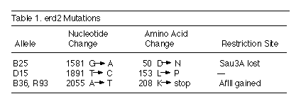 by sequencing. Mutant erd2 alleles were isolated from genomic