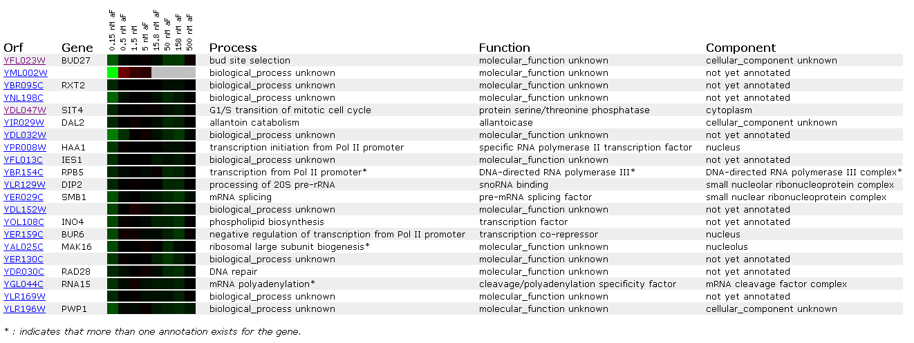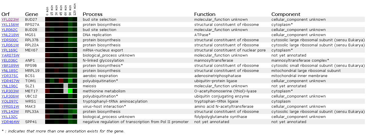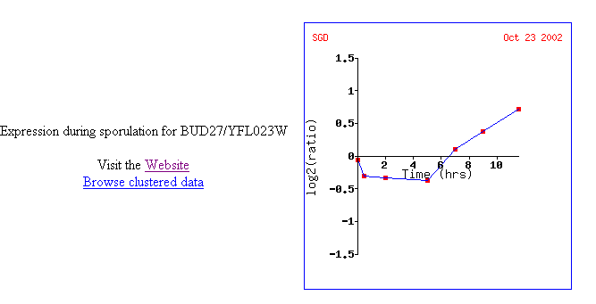 I first viewed BUD27 microarray data from Expression Connection. The same scale from above can be used and the type of information provided here about BUD27 is very similar to that provided about STE2.