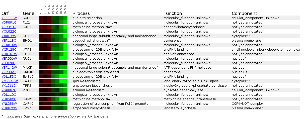 Expression during the diauxic shift (Stanford University; DeRisi et al., 1997)