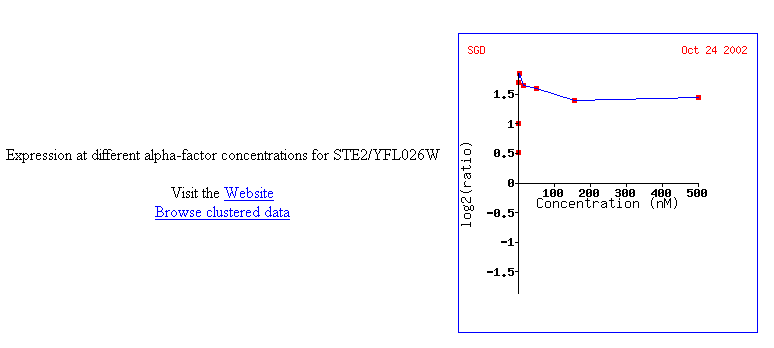 Expression at Different Alpha-Factor Concentrations for STE2/YFL026W (from Rosetta Inpharmatics; Roberts, et al., 2000)