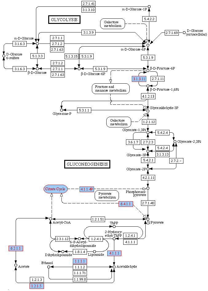 This figure was modified from the interactive KEGG circuit diagram of glucose metabolism hosted by GenomeNet at Kyoto University, Japan.
