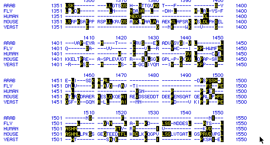 sequence alignment of the amino acids of five genbank organisms (arab-arabindopsis