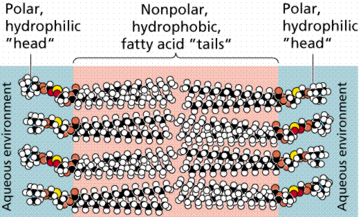 Figure 1. Diagram of the Phospholipid Bilayer. This image shows the chemical components of the plasma membrane. The polar head groups face outward while the hydrophobic tail groups face inward and interact with one another to hold the membrane together. Polar molecules cannot pass through this membrane without external aid (Farabee, 2001). Image from http://www.emc.maricopa.edu/faculty/farabee/BIOBK/BioBooktransp.html Permission Pending.