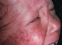 Figure 6. A Picture of an individual suffering from RTS. This image shows the skin lesions and damage caused by the photosensitivity of RTS, a disorder caused by a mutation in RecQL4. Image from http://www.emedicine.com/derm/topic379.htm Permission pending.