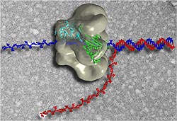 Figure 1. The Activity of a DNA Helicase. This image shows an artist's representation of the activity of a T7 DNA helicase. The basic process of unwinding the DNA double helix is common to all DNA helicases across species. Image from http://www2.umdnj.edu/bchemweb/HTML/newHandbook.html (courtesty Dr. Smita Patel and Dr. Edward Egelman) Permission Obtained.