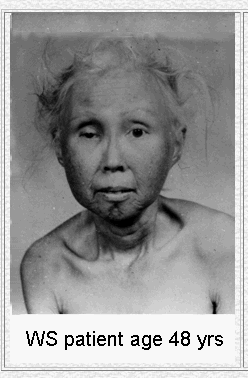 Figure 4. The premature aging effects of Werner's Syndrome. These pictures show a Werner's syndrome patient at 15 and 48, demonstrating the rapid aging effects of the disease. Image from http://www.pathology.washington.edu/research/werner/ Permission Pending.