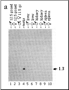 XY testis RNA (lane 4), but not in other adult tissues or in 11.5-d.p.c.