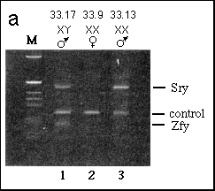 For DNA analysis, SRY primers used were (5'-3') GATCAGCAAGCAGCTGGGATACCAGTG
