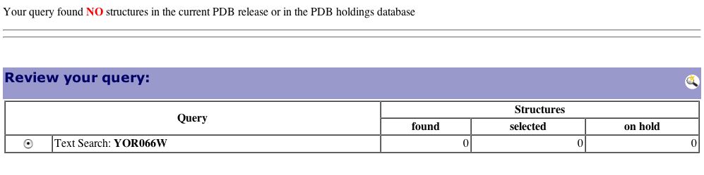 Figure 15. There is no known structure for the YOR066W protein (PDB, 2004).