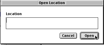 You can find the URL by holding down the apple key and typing N. This will launch a new browser. Click your way through the web until you find the page you want to modify. Highlight the URL in all black, copy and paste it into the dialog box. Or you can type in the URL if you know it. Click the Open button. |