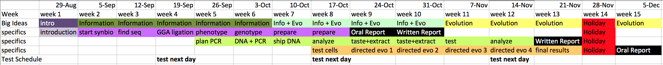 | October 24 | Oral Report on Synthetic Biology Information |