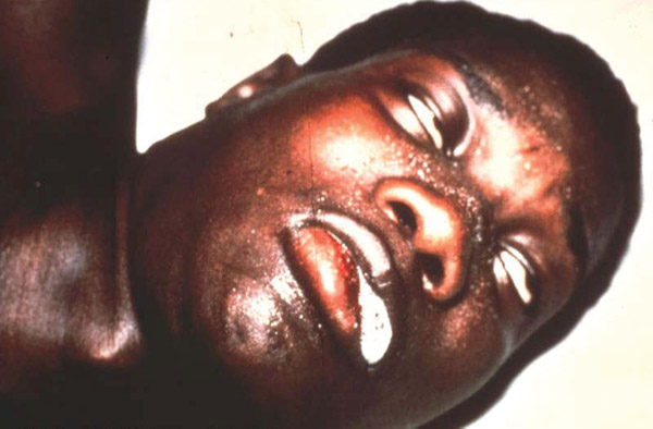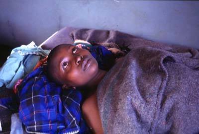 A young boy dying from the disease.
