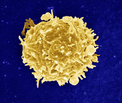 CD4+ T-cells also demonstrate low levels of response in individuals with chronic HBV. One possible reason for this hyporesponsiveness is an impaired function of dendritic cells. This notion is controversial, however, because the effect of chronic HBV on dendritic cells seems minimal. Another possible cause of this weak HBV-specific T-cell response is the role of regulatory T (Treg) cells, which have demonstrated suppression of immunological responses against self and foreign antigens through specific cytokines and direct cell to cell contact. Studies have shown that depletion of Treg cells in patients with chronic HBV infection have experienced increased function of HBV-specific T-cells. This too is controversial, however, because the same effects were seen in patients with resolved HBV infection (Bertoletti and Gehring, 2006). The figure below shows an scanning electron micrograph image of a Treg cell extracted from a mouse spleen.